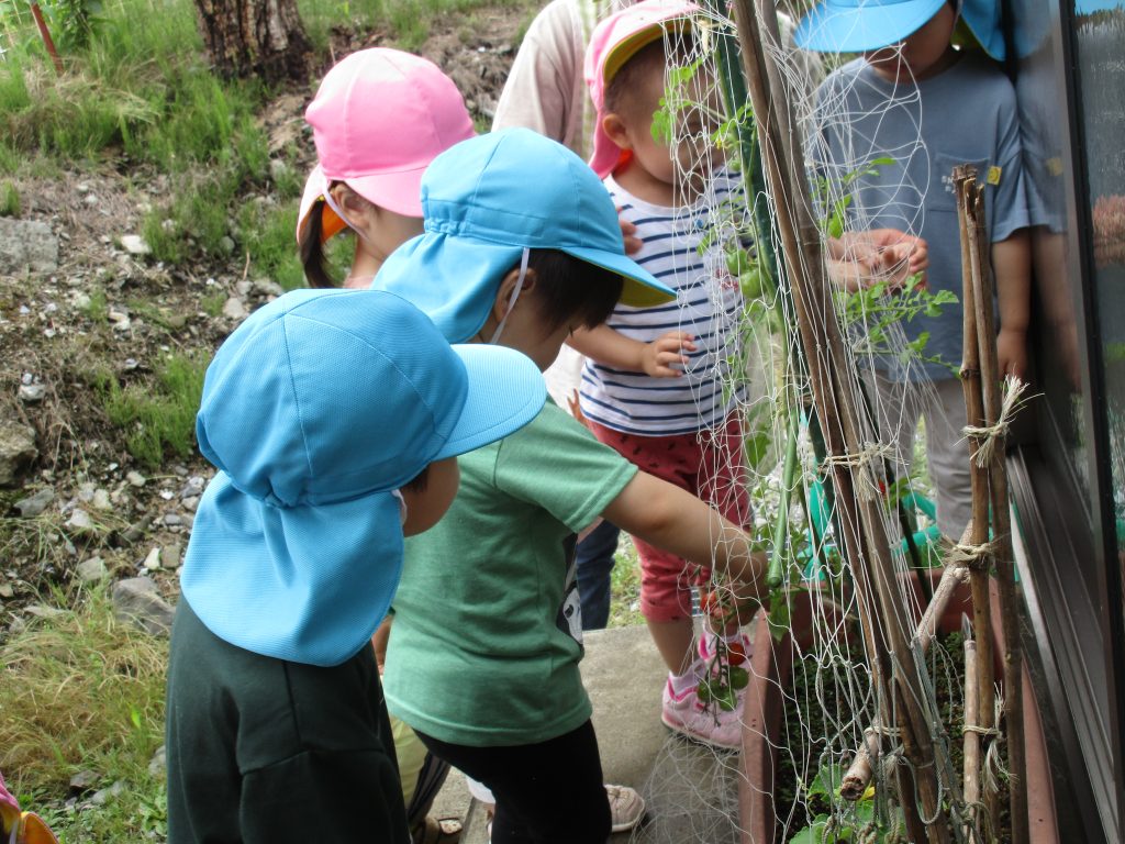 隣りの畑に実っているきゅうりやスイカ等も見学させてもらいました!!