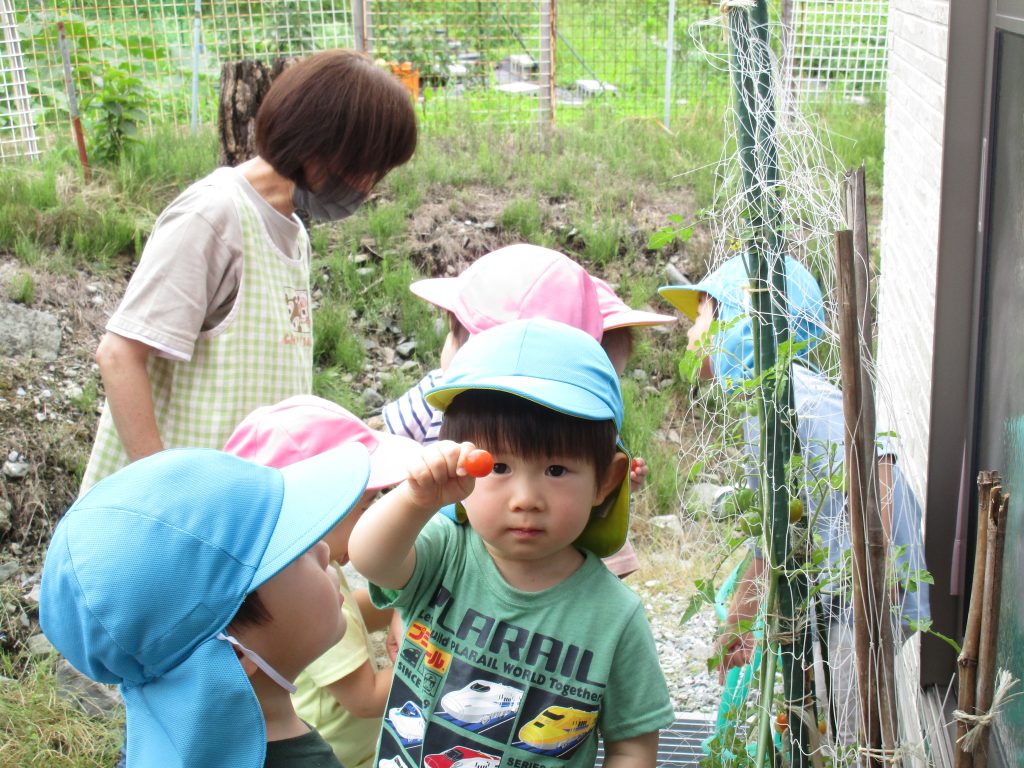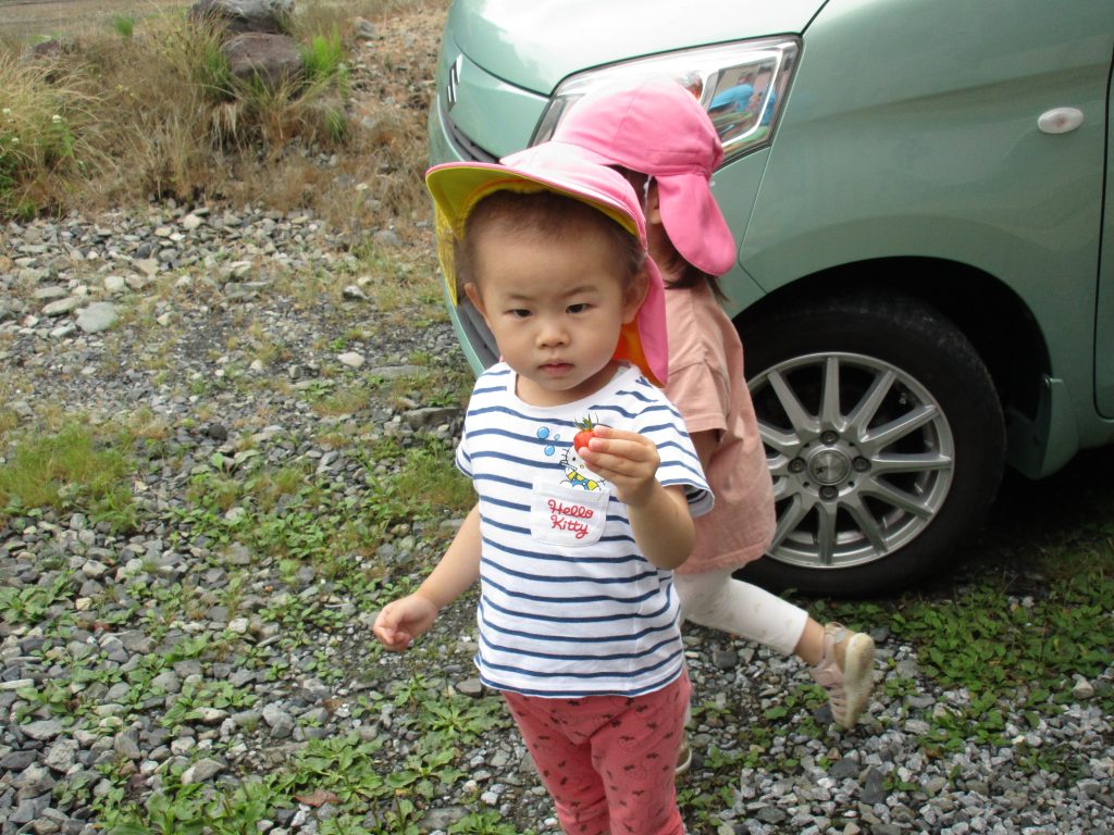 ミニトマトも赤く実っていたので収穫してお部屋に戻ろうとしたら
