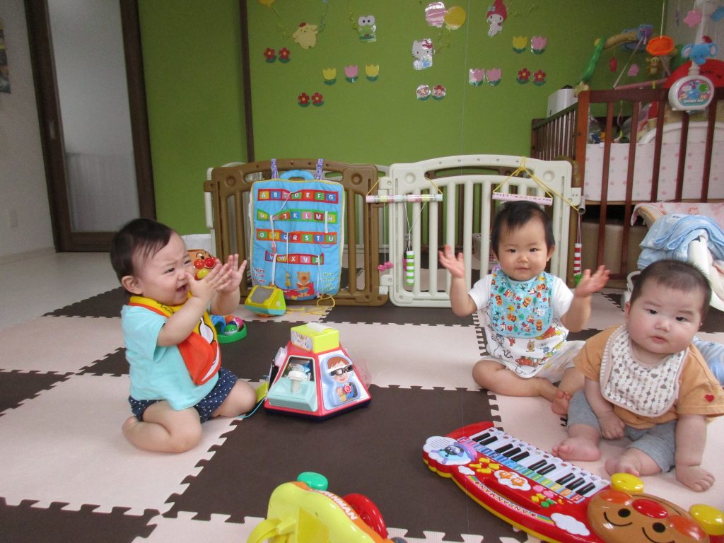 今日は0歳児さんは玩具遊び、1歳児さんはモンテッソーリ教具、