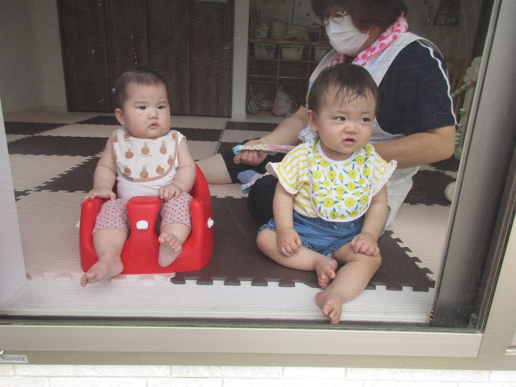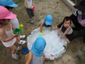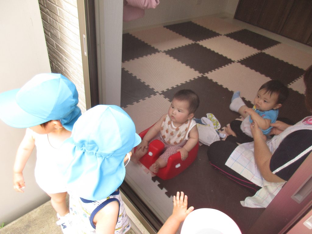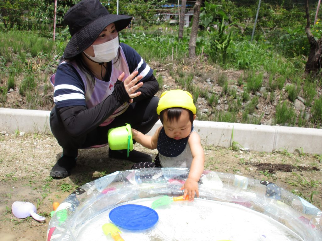 0歳児さんも少しの時間でしたが一緒に水遊びをして楽しみました(*´∀`*)