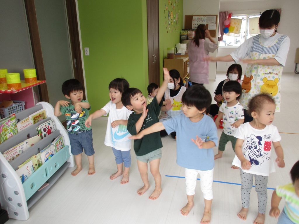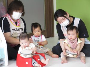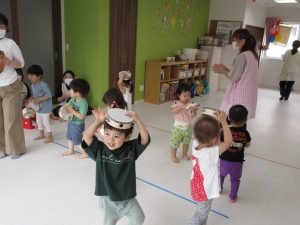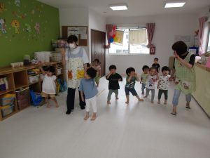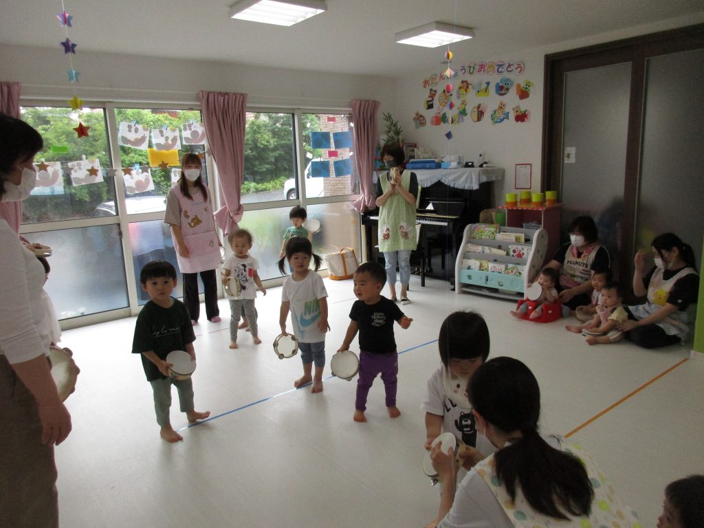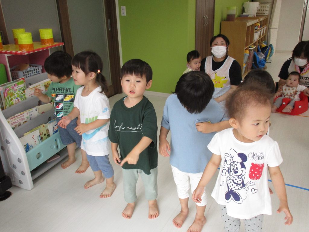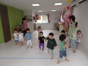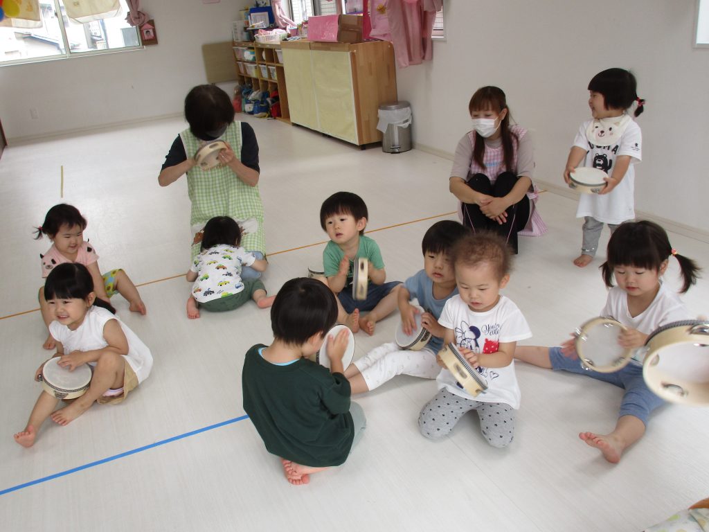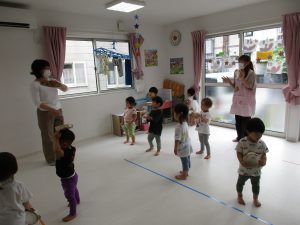 お歌を歌ったり、リズム遊びをしたり、元気いっぱいの子ども達でした!!