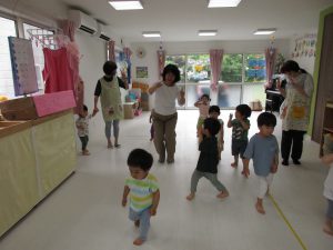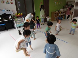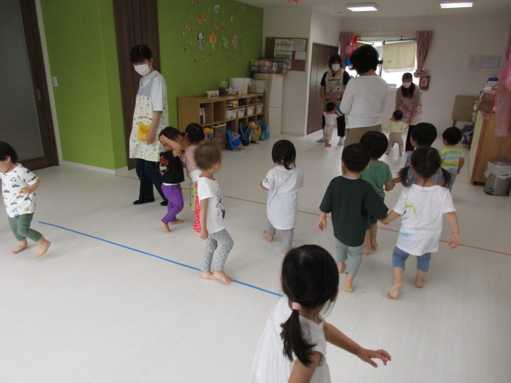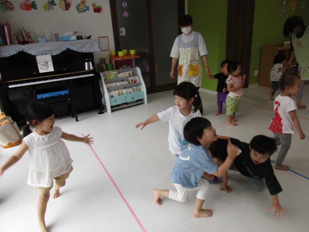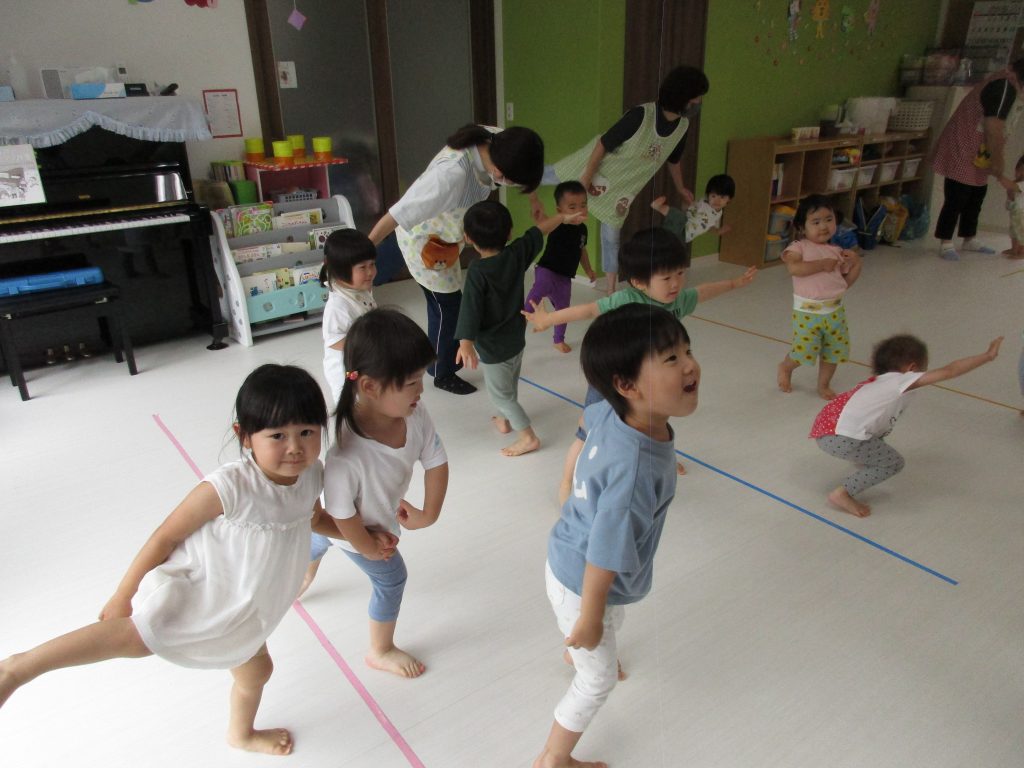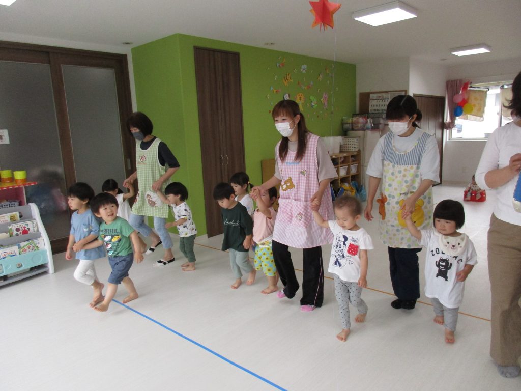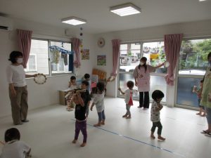 お歌を歌ったり、リズム遊びをしたり、元気いっぱいの子ども達でした!!