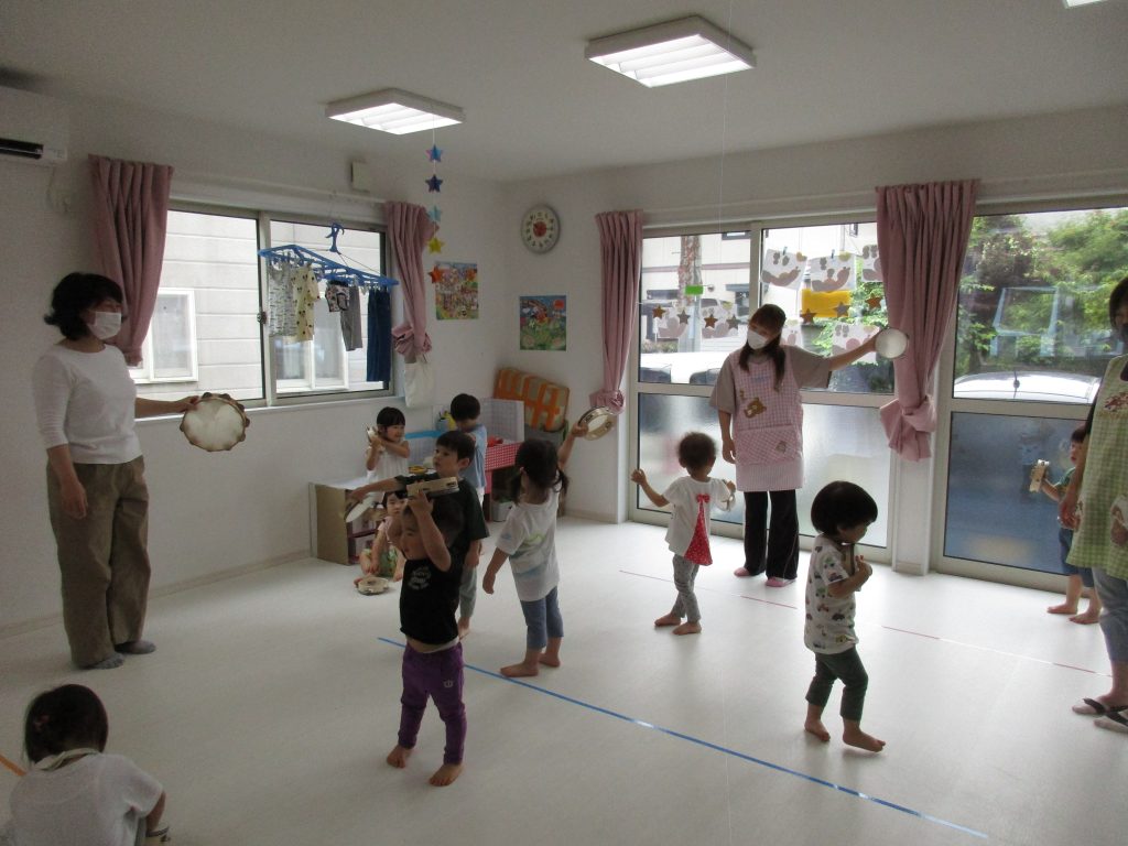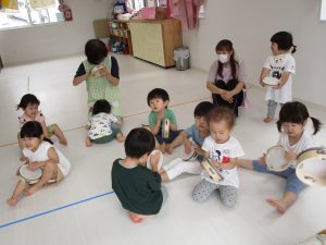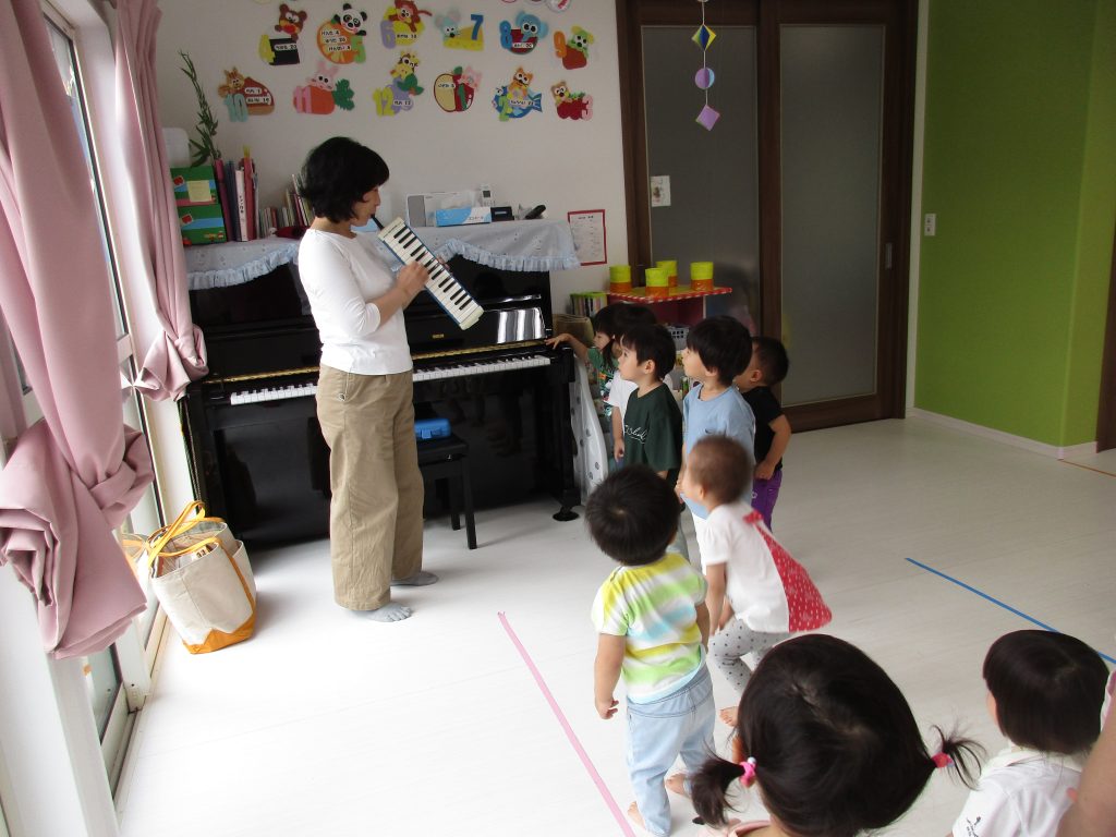 講師の先生の弾く鍵盤ハーモニカに合わせてリズム遊びをしました!!