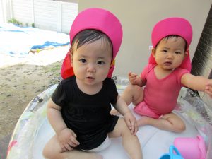 小さいプールに座らせると最後まで立ち上がらずに落ち着いて