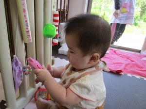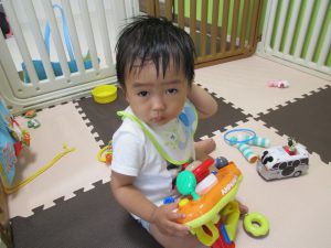 小さいお友達はお部屋でのんびりと玩具で遊び