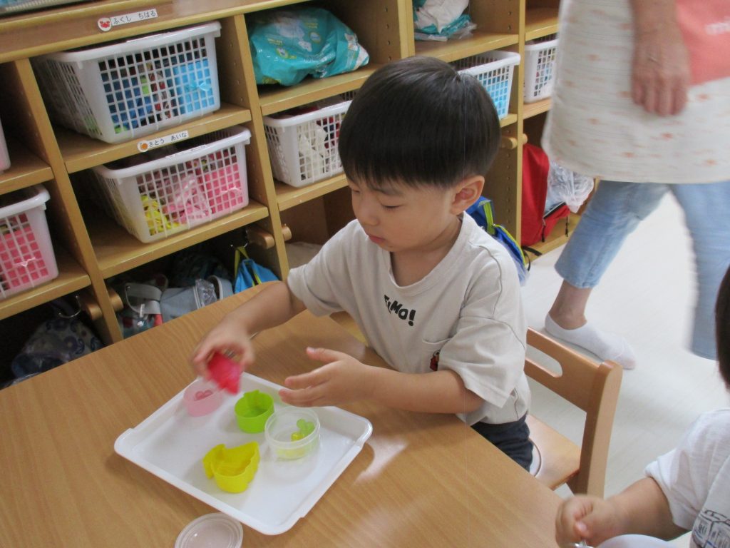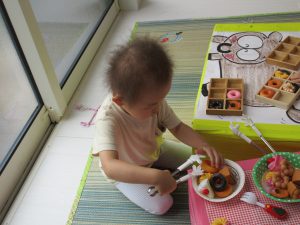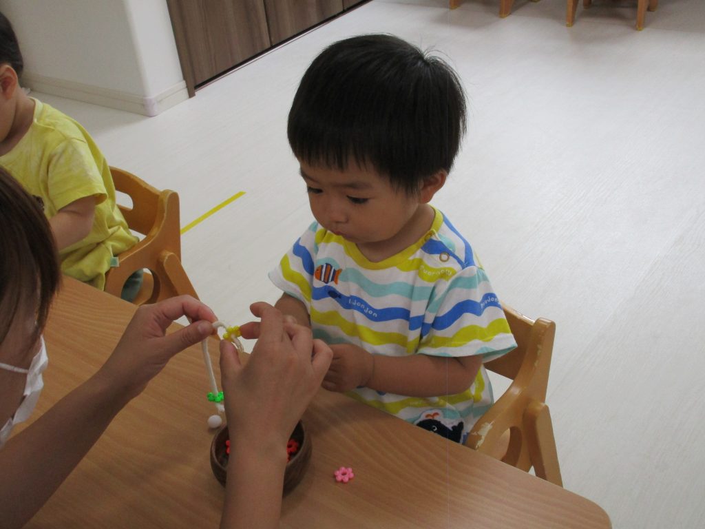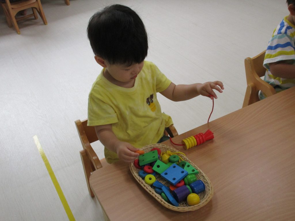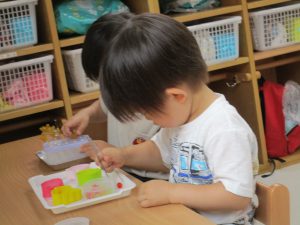 1・2歳児さんはドーナツ屋さん、ポットン落とし、モンテッソーリ教具と