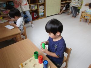 他のお友達はモンテッソーリ教具でお仕事をしました!!
