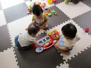アンパンマンのキーボードを出すとみんな集まってきたのですが、