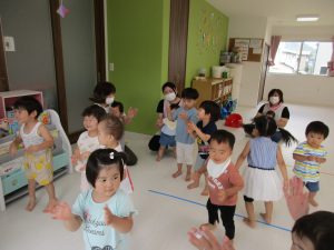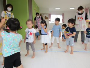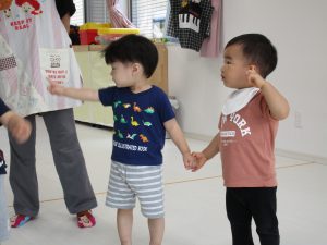 お友達と仲良く手を繋いだり、大きな声でお歌を歌ったり