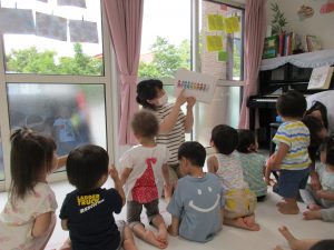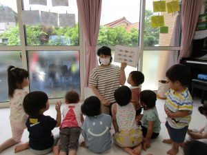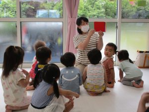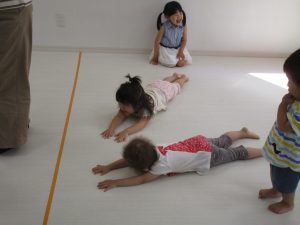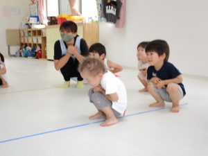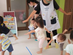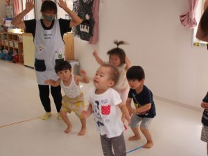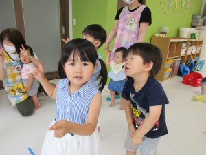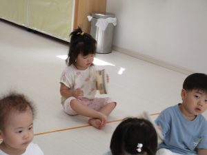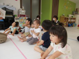 リトミックが終わったあとは2才児さんはお外に出て