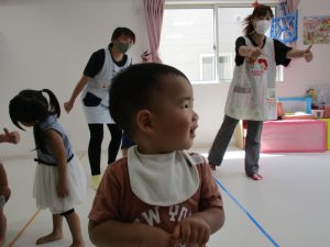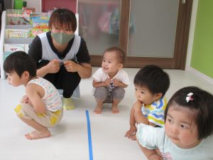 0歳児のお友達は支えられて参加しました(*´∀`*)