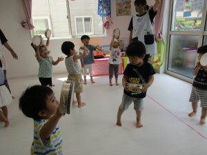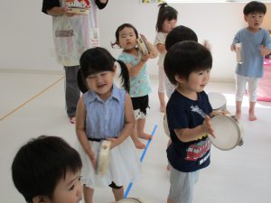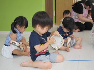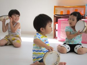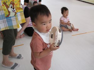タンバリンをすると0歳児のお友達もみんな