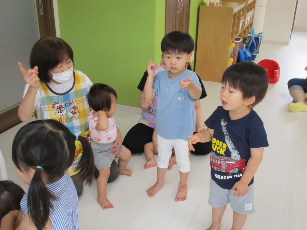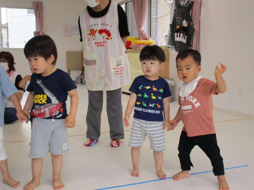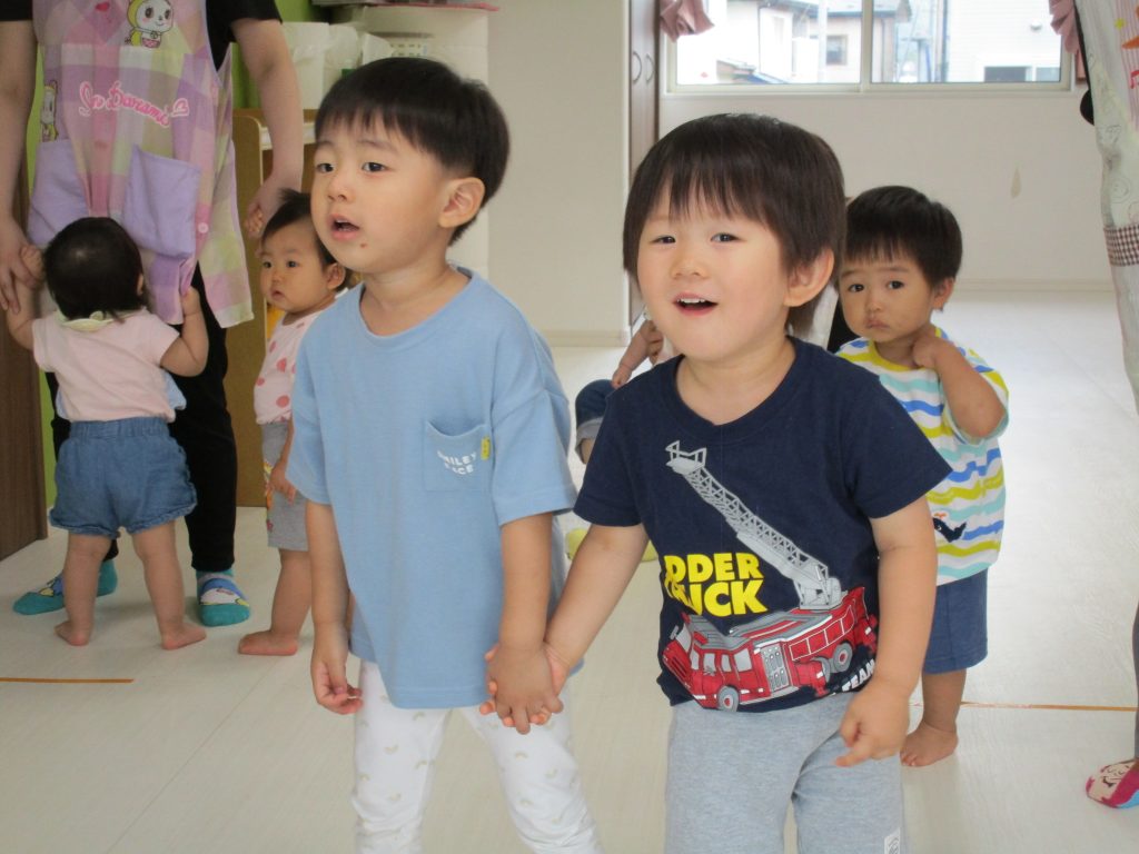 お友達と仲良く手を繋いだり、大きな声でお歌を歌ったり