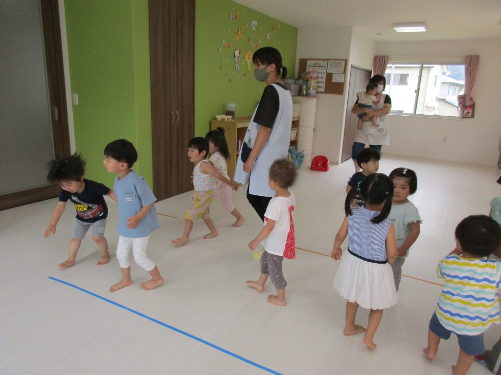 リトミックが終わったあとは2才児さんはお外に出て