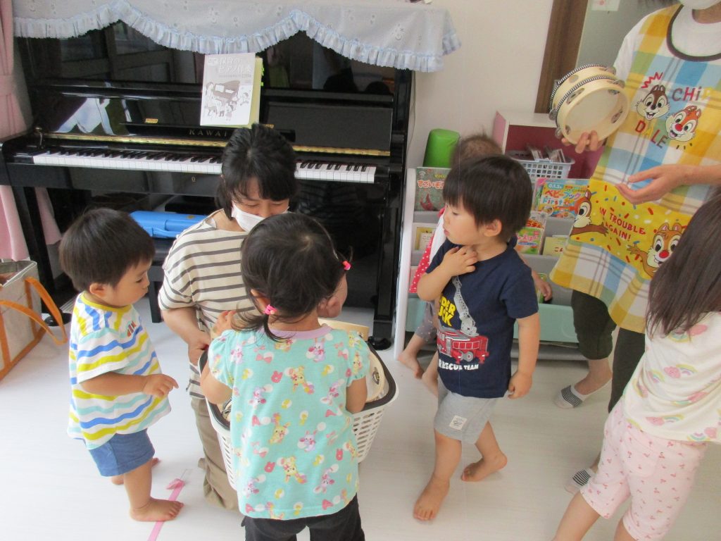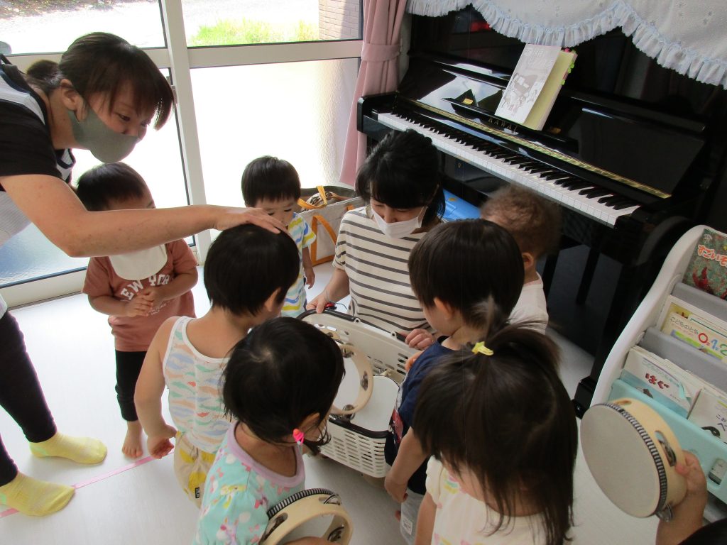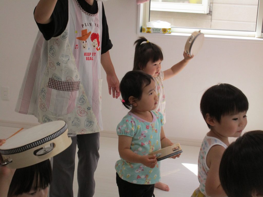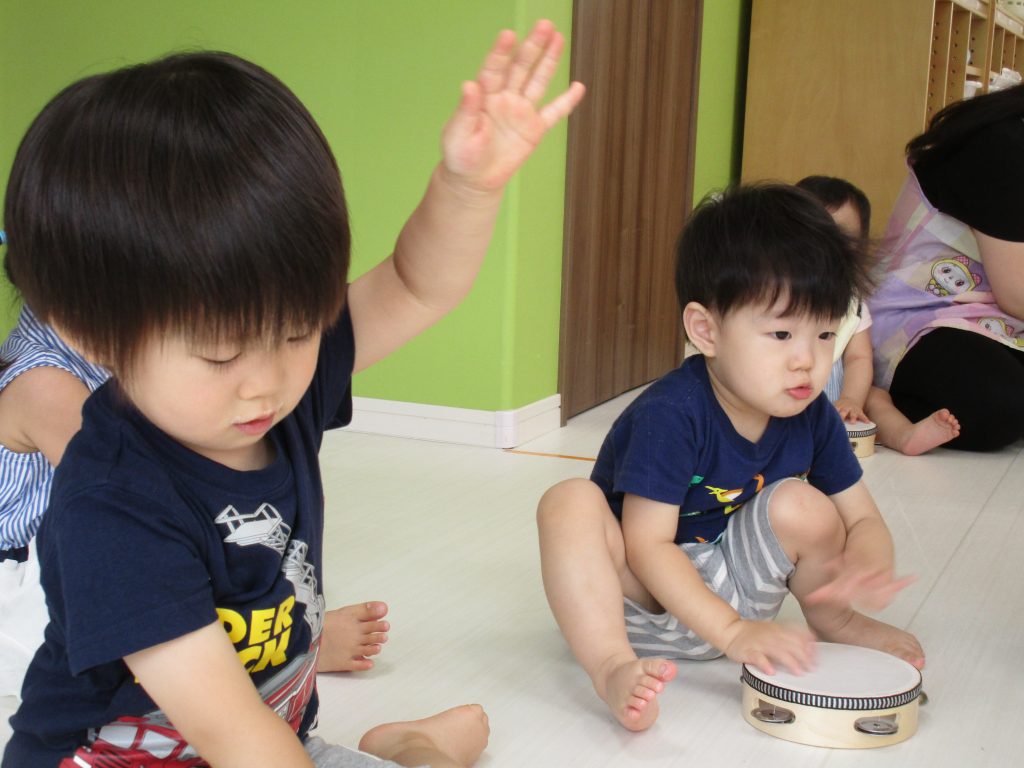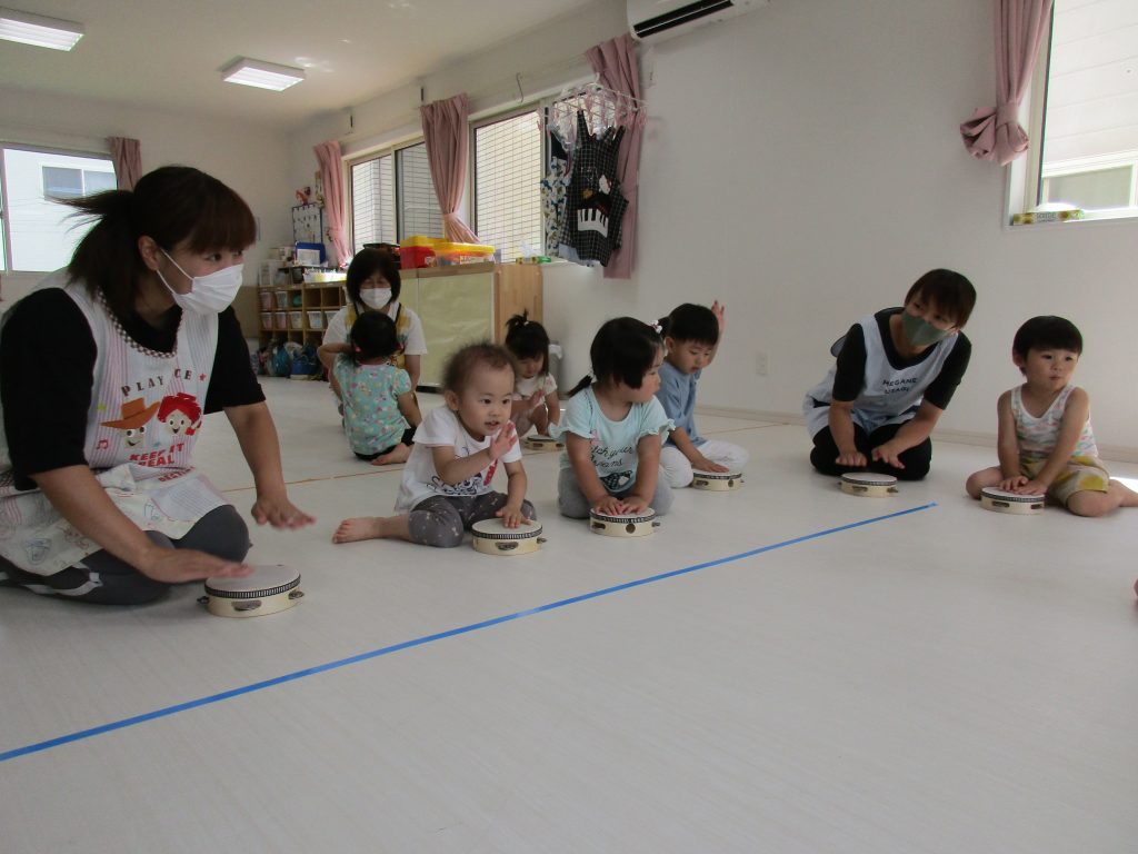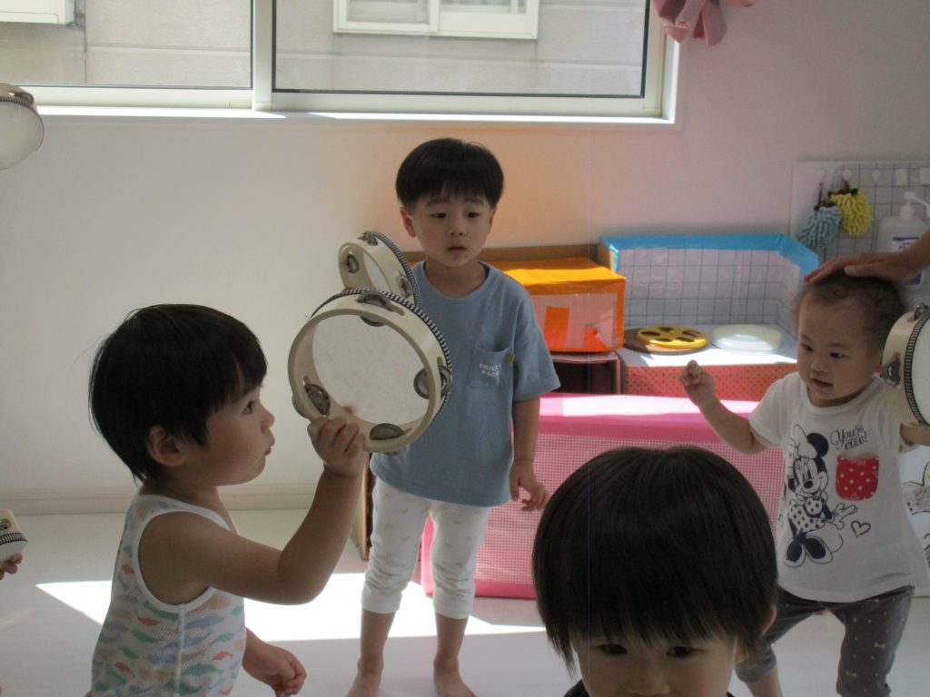 タンバリンをすると0歳児のお友達もみんな