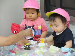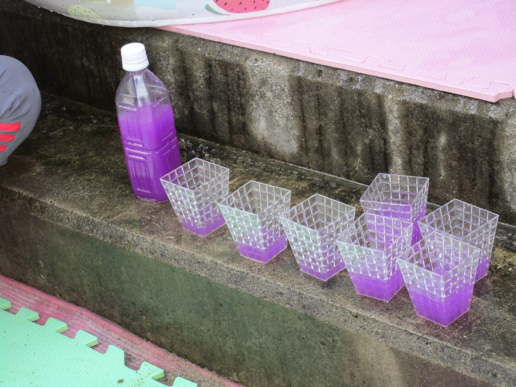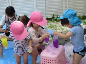 じょうろや玩具で遊んだり、色水遊びをしたりしました!!