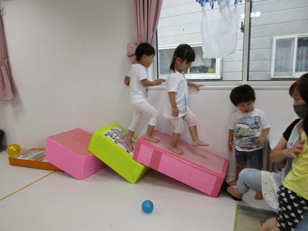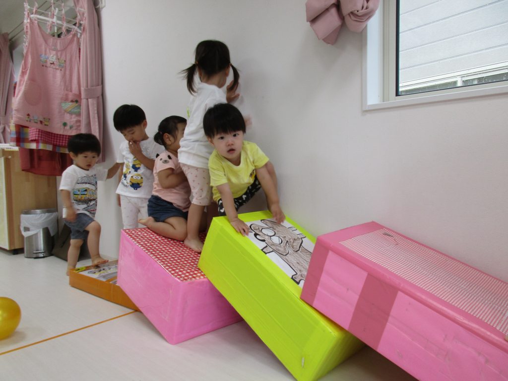 斜めに重ねてすべり台を作って楽しんでいたお友達もいました(*^_^*)