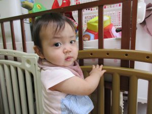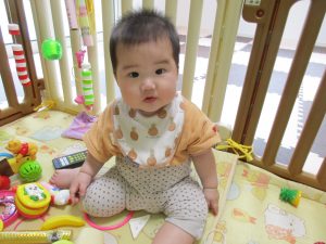 0歳児さんは前半は玩具遊びをしましたが、後半はお布団のお山を作って