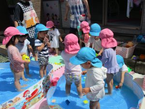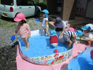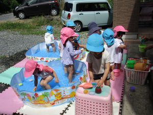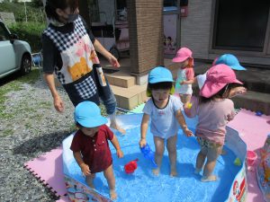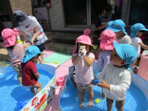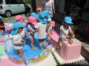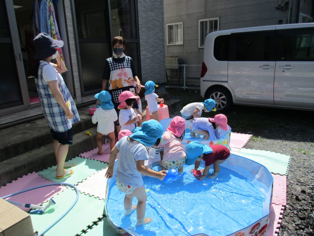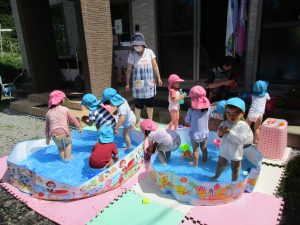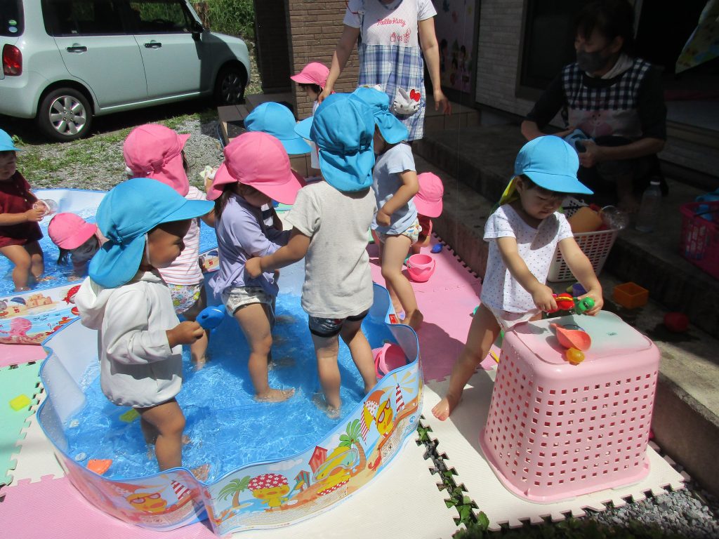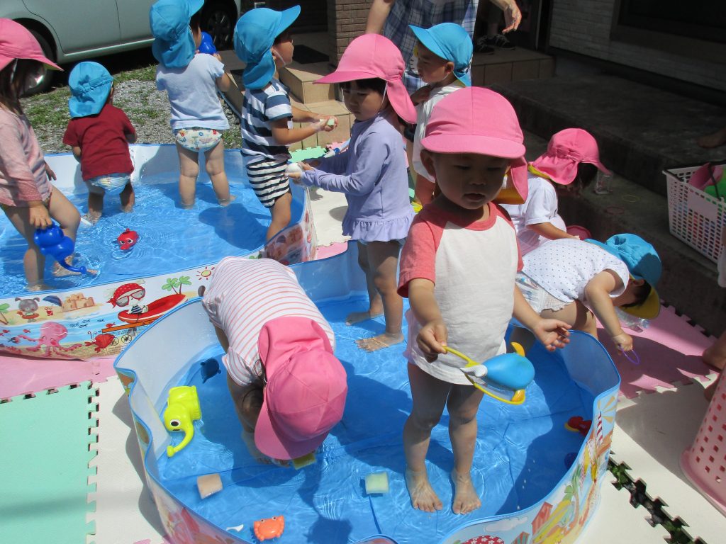 1・2歳児さんはプール遊びをしました!!