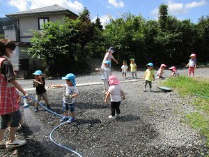 今日は天気が良かったので1,2歳児クラスの子ども達はお外で遊びました★