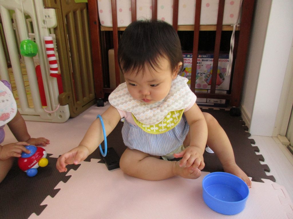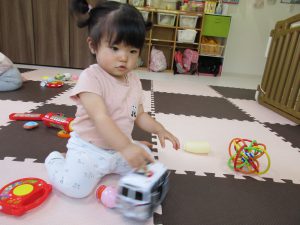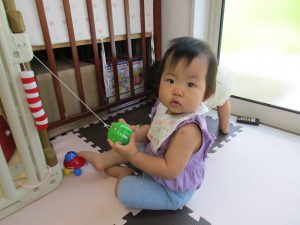 0歳児クラスはお部屋でゆったりと玩具を使って遊びました★