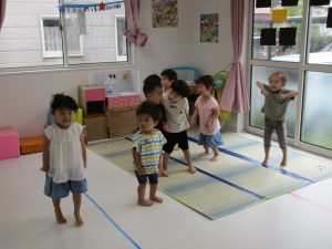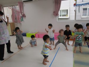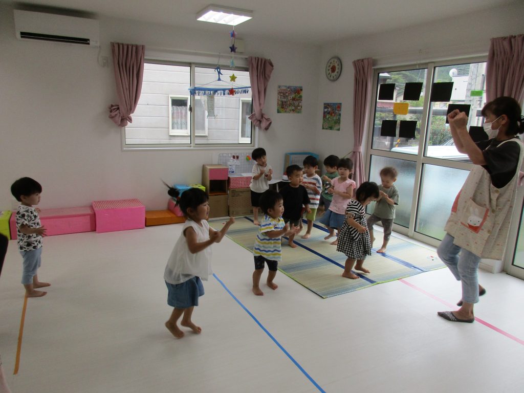 声があり、1・2歳児さんでエビカニクスを踊リました(^o^)♬