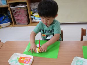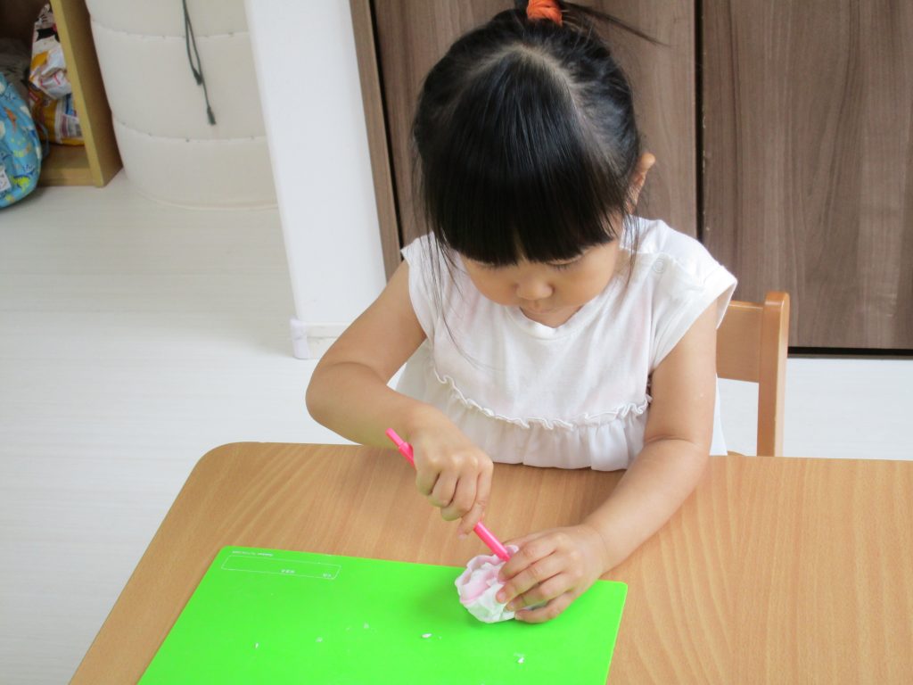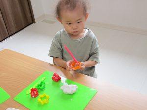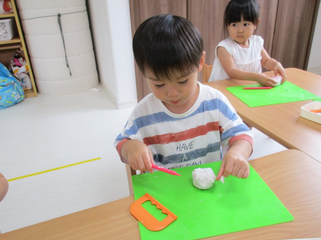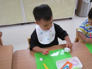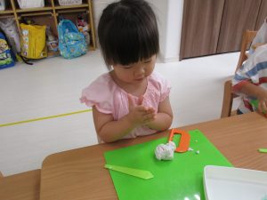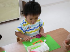 小さく粘土をつまんで楽しむお友達もいました(^_^)