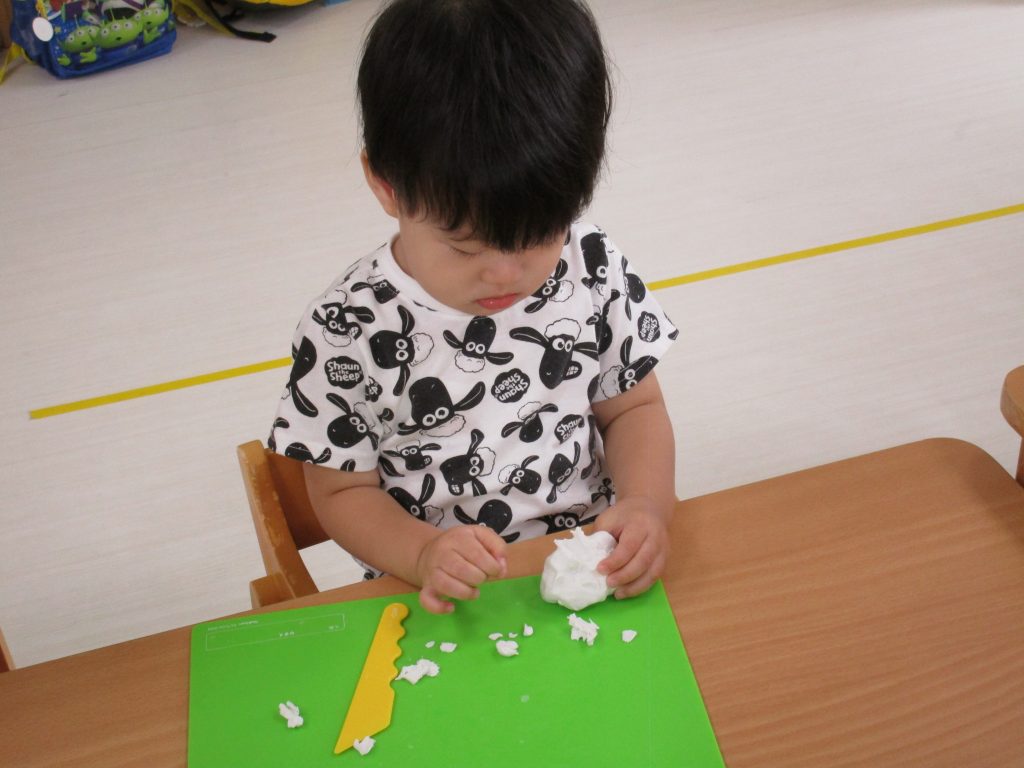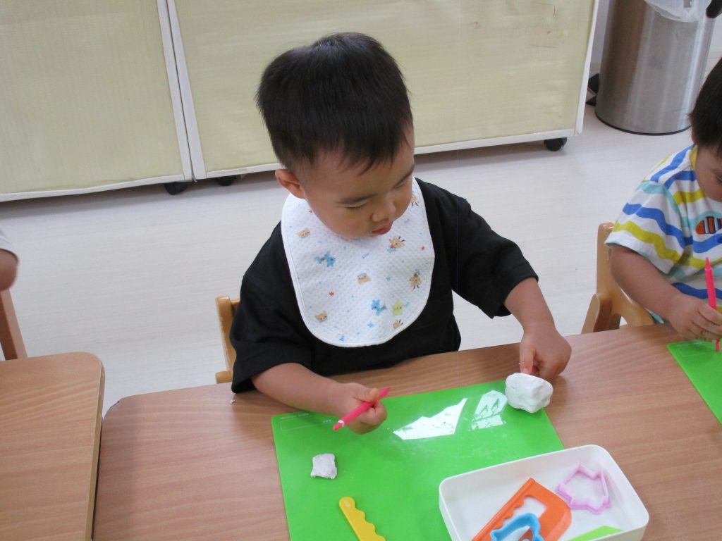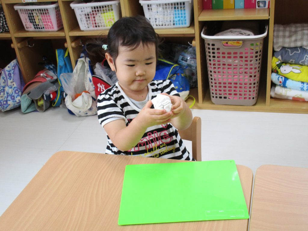 日中の活動では、1・2歳児さんは粘土遊びをしました!!