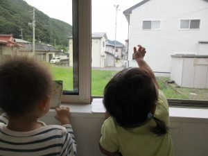 時々お外を見て、飛んでいる虫や草木を