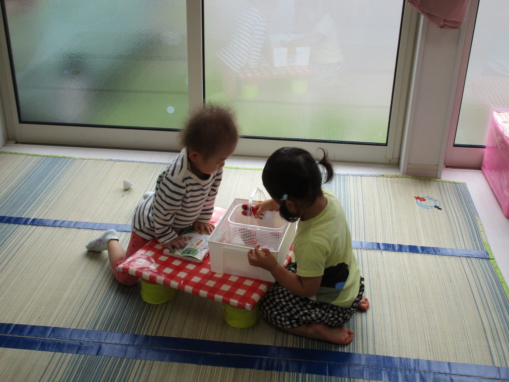お部屋組は室内でままごとや