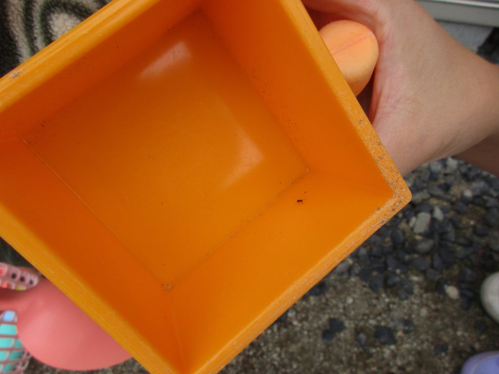 1・2歳児さんは砂遊びを始めたのですが、途中から虫探しをしたいという