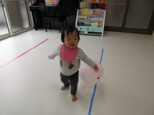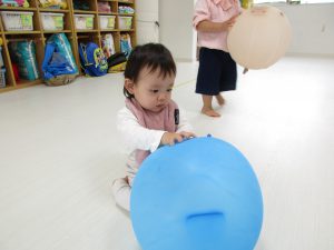 積木の上に登ったり、風船のふわふわの感触を楽しんだり、