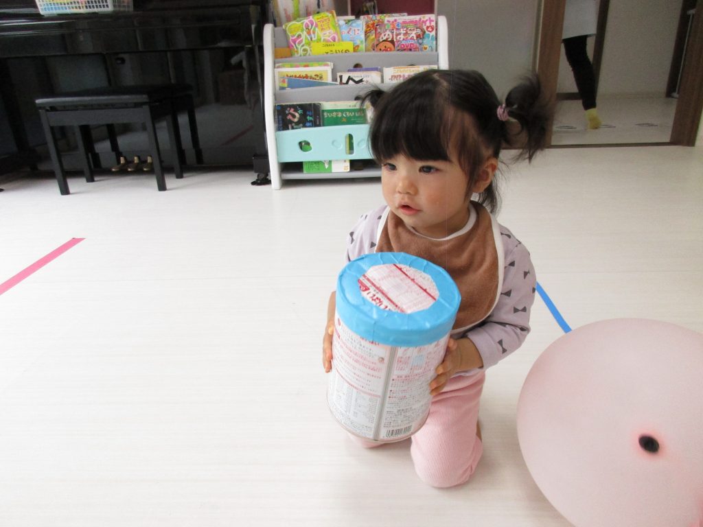 0歳児さんとお外に行けなかったお友達は、1・2歳児さんのお部屋で