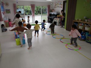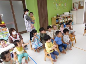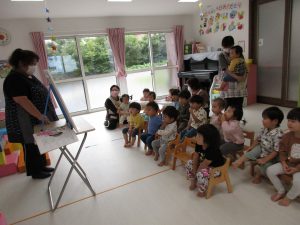 みんなで集まって季節のお歌を歌たり先生からの出し物を