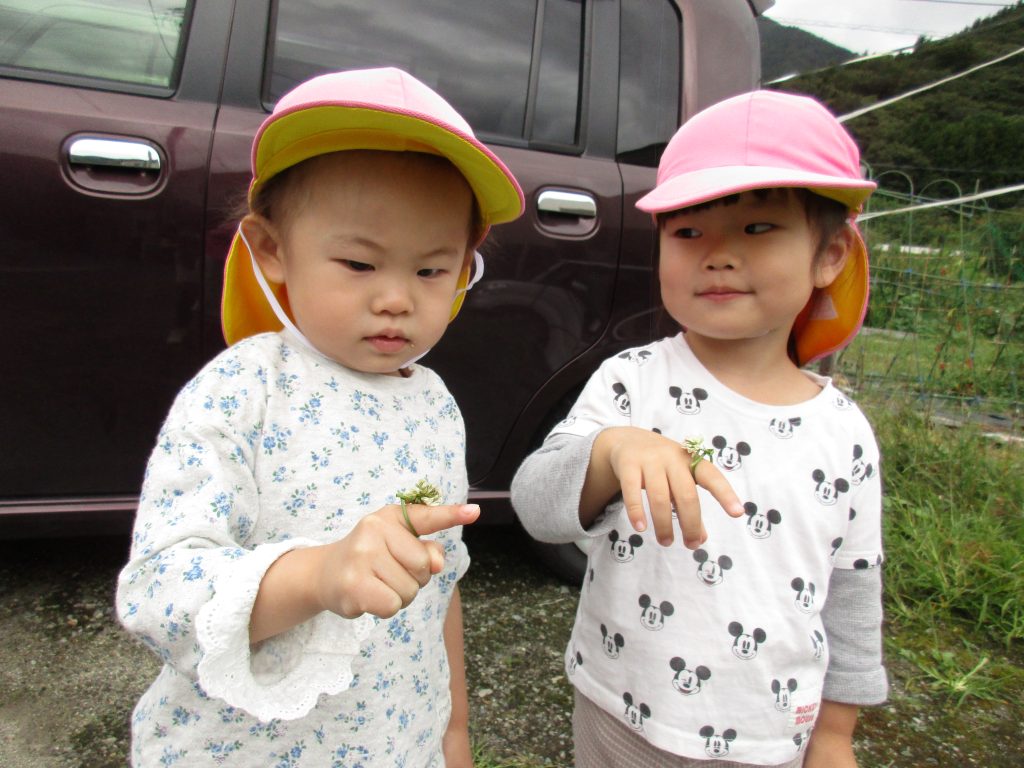 2歳児クラスは製作後にお外遊びを