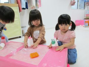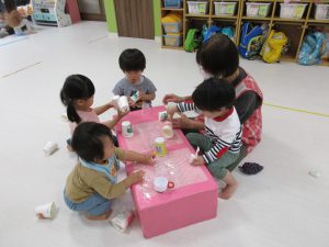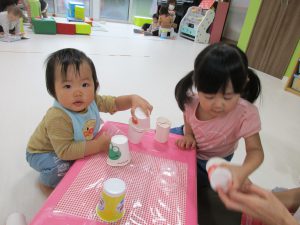 0歳児さんのお友達も気に入って、2歳児さんが飛ばすところを