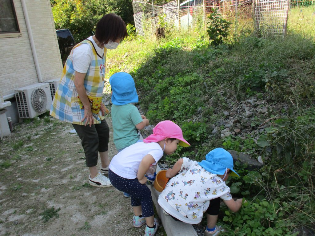 園庭を散策して歩いたり、月齢の大きいお友達は