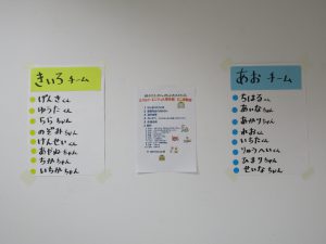 お部屋の装飾とプログラム、各チームのメンバー表です!!