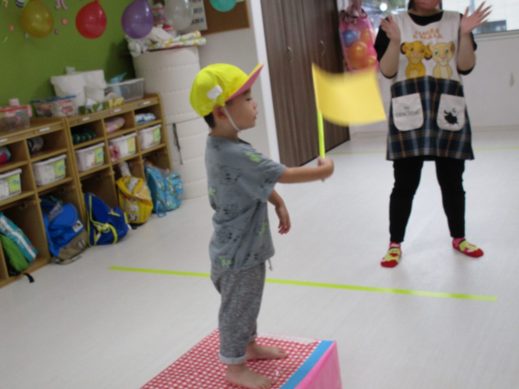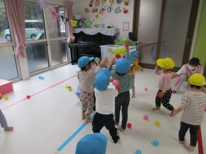 片付けでは黄色チームが勝ち、玉入れも引き分けでした(^o^)