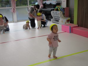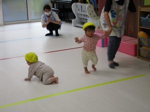 クラスの先生が待っているところまで歩いたり、ハイハイで