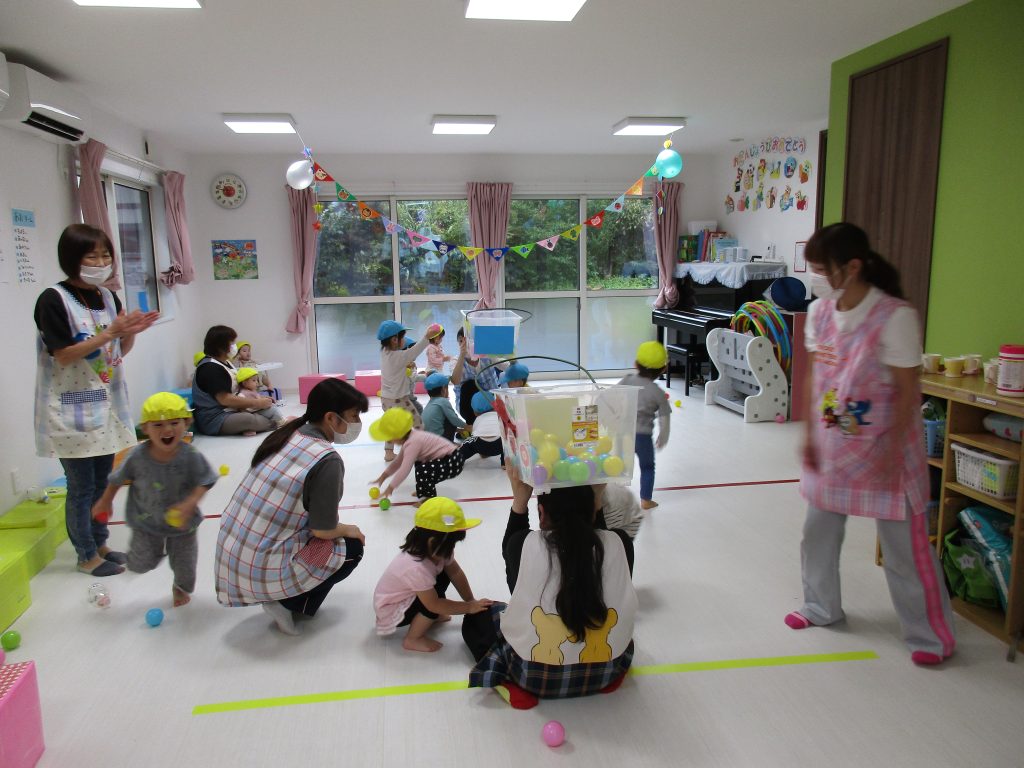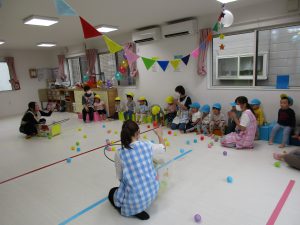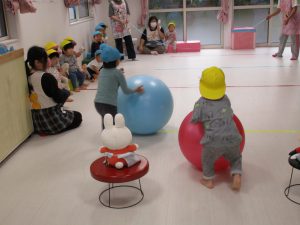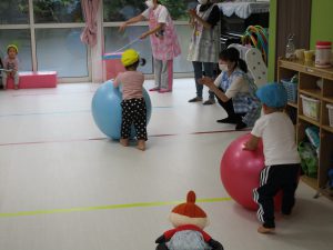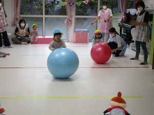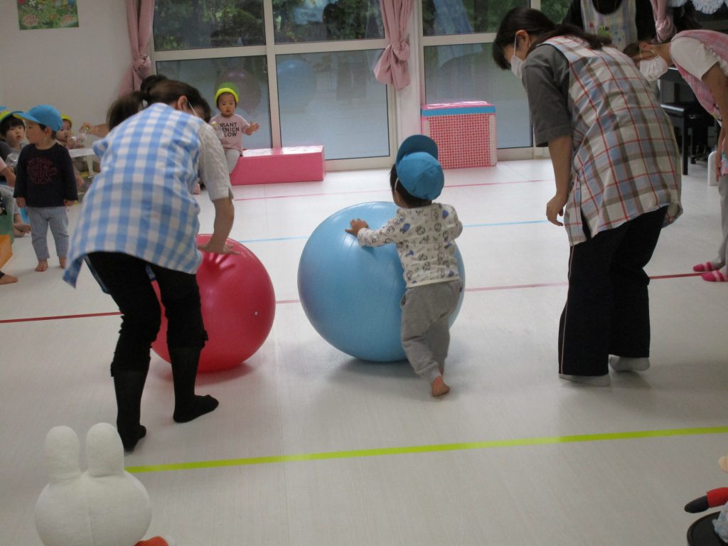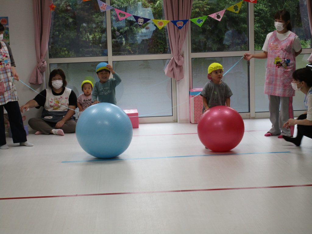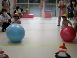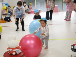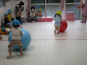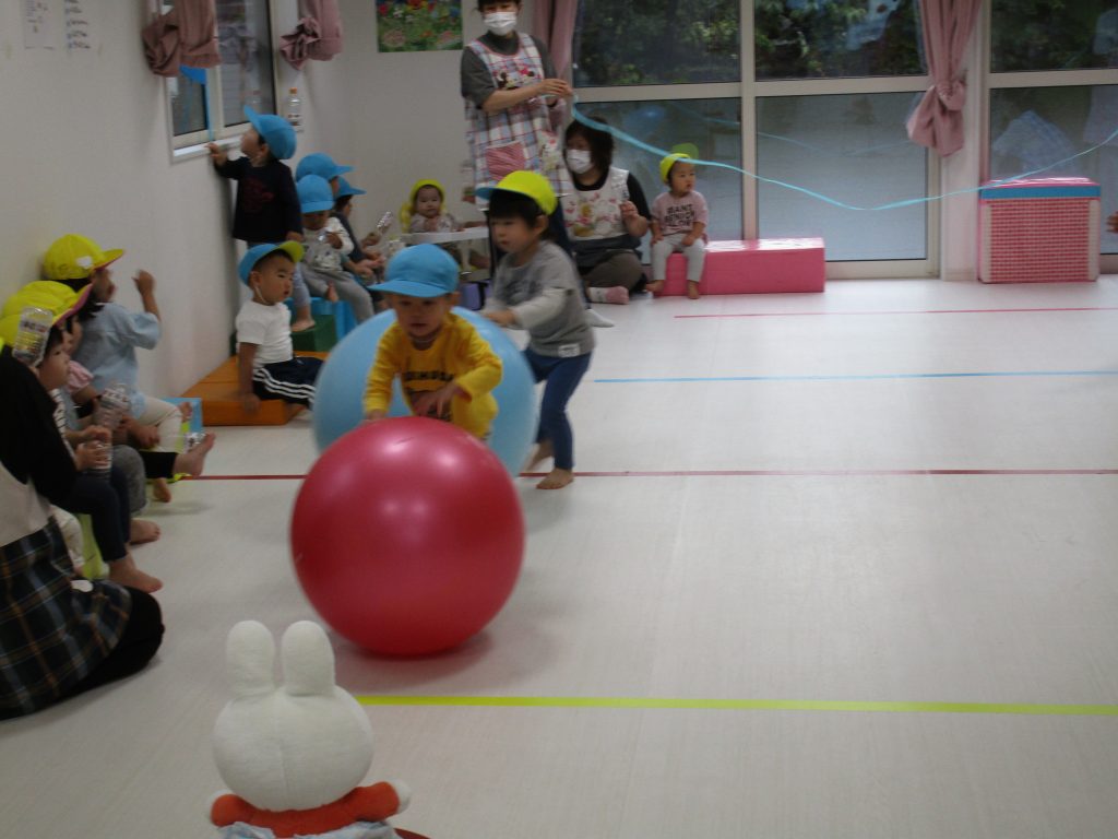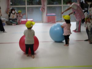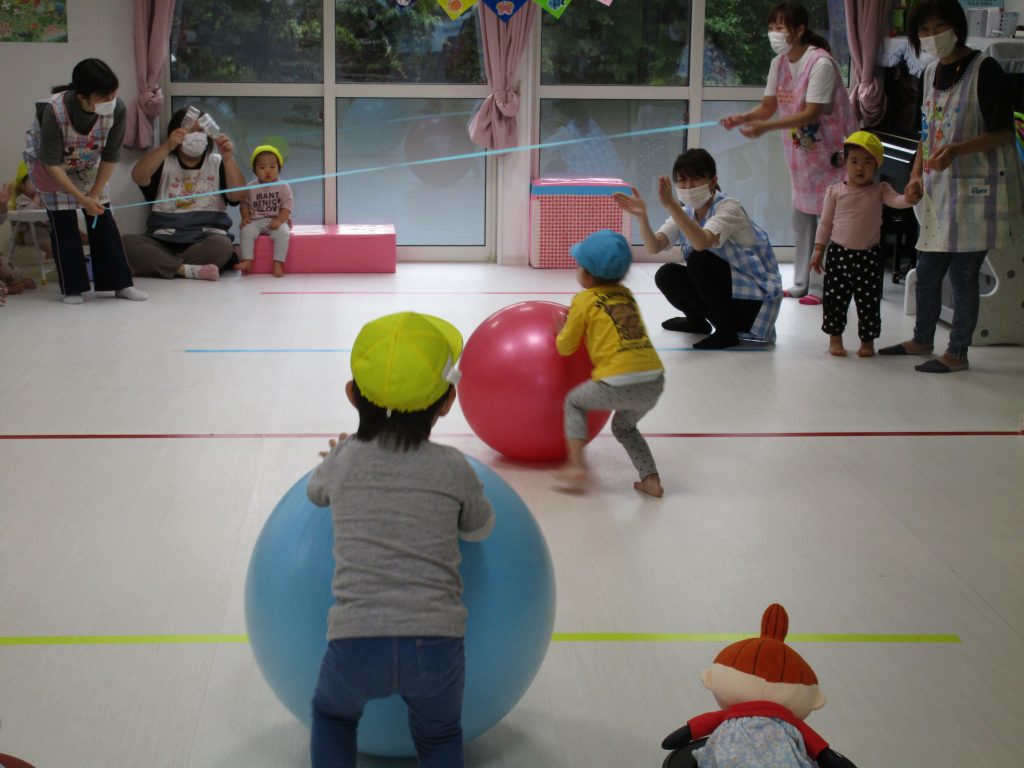 1歳児さんも参加予定でしたが、大玉転がしに参加したので
