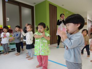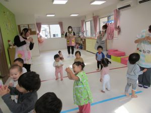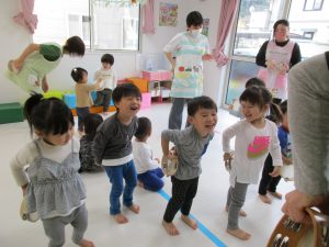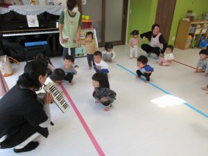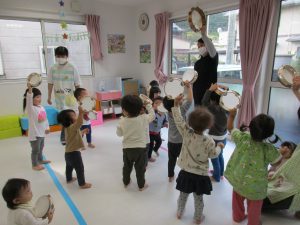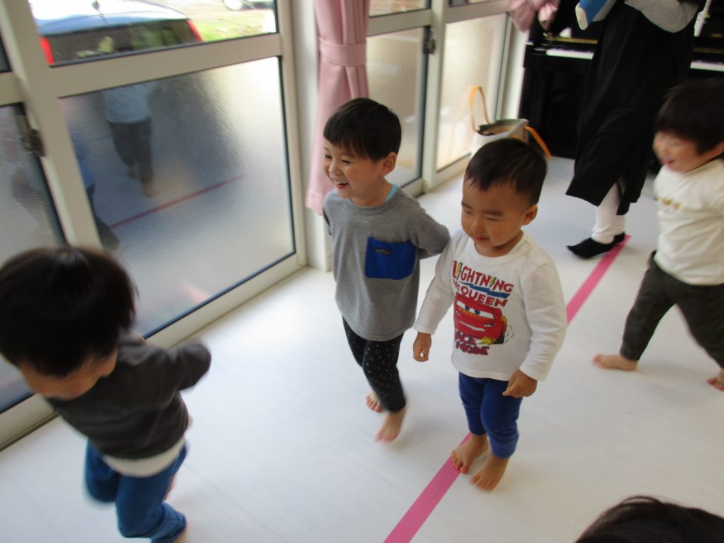 今日のリトミックもたくさん体を動かしたり音楽に触れたりして、