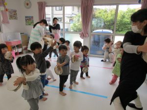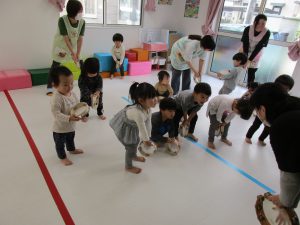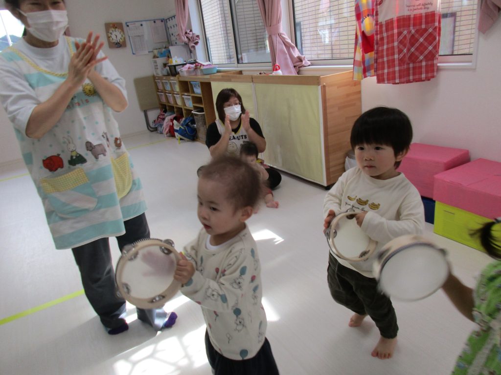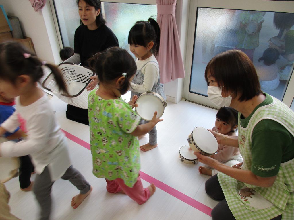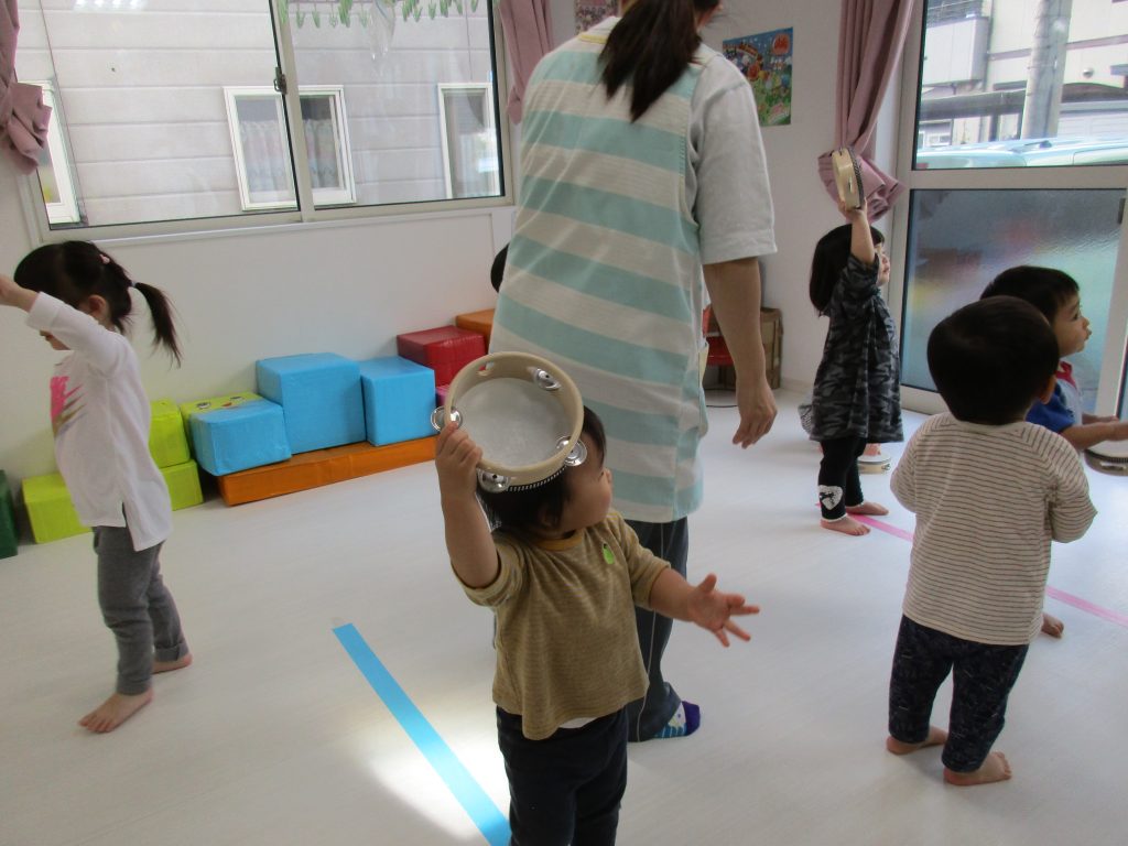 タンバリンを使ってのリズム遊びです!!