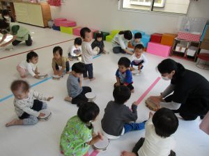 講師の先生の弾く鍵盤ハーモニカに合わせてリズム遊びをしました!!