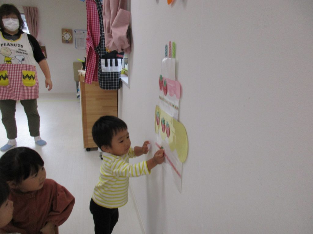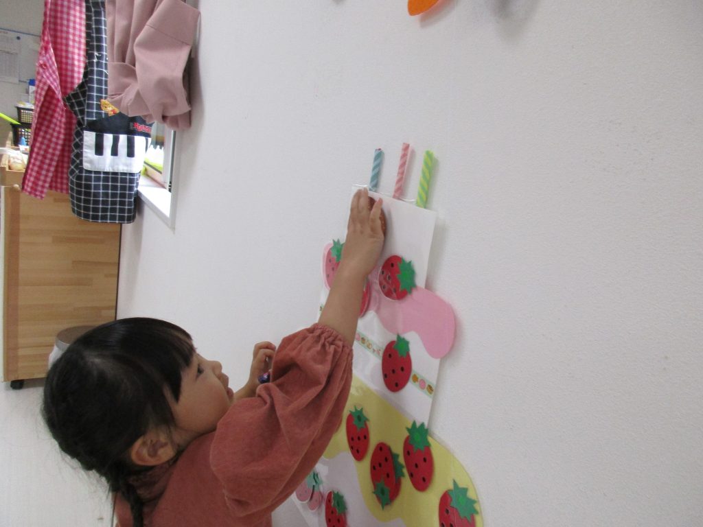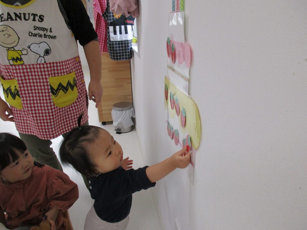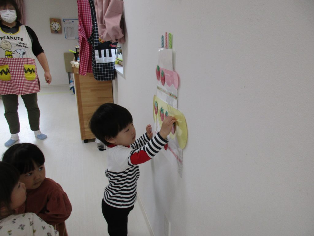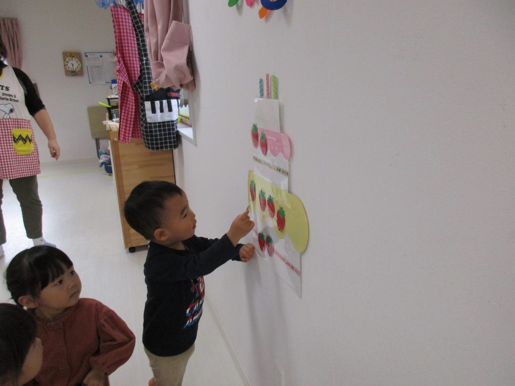 誕生児のお友達のためにみんなでケーキにいちご🍓の