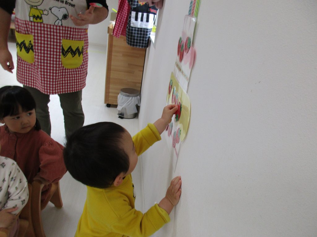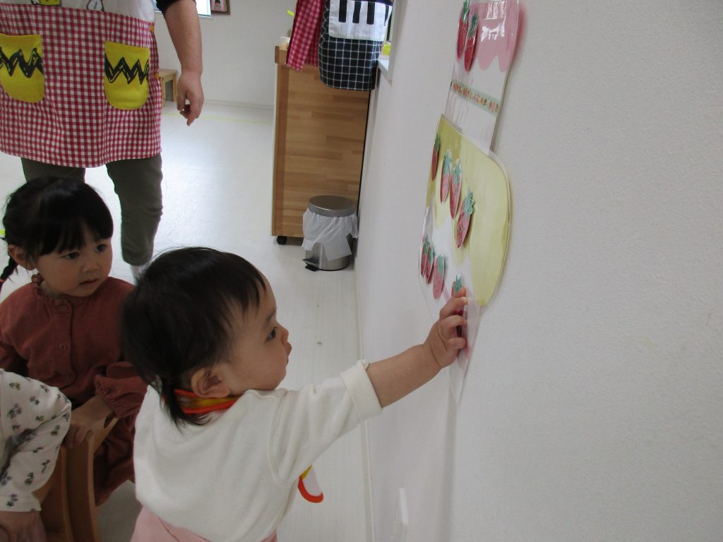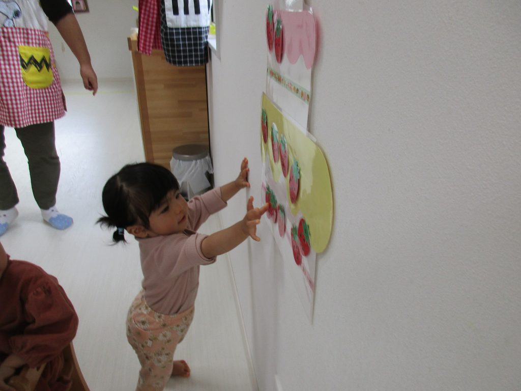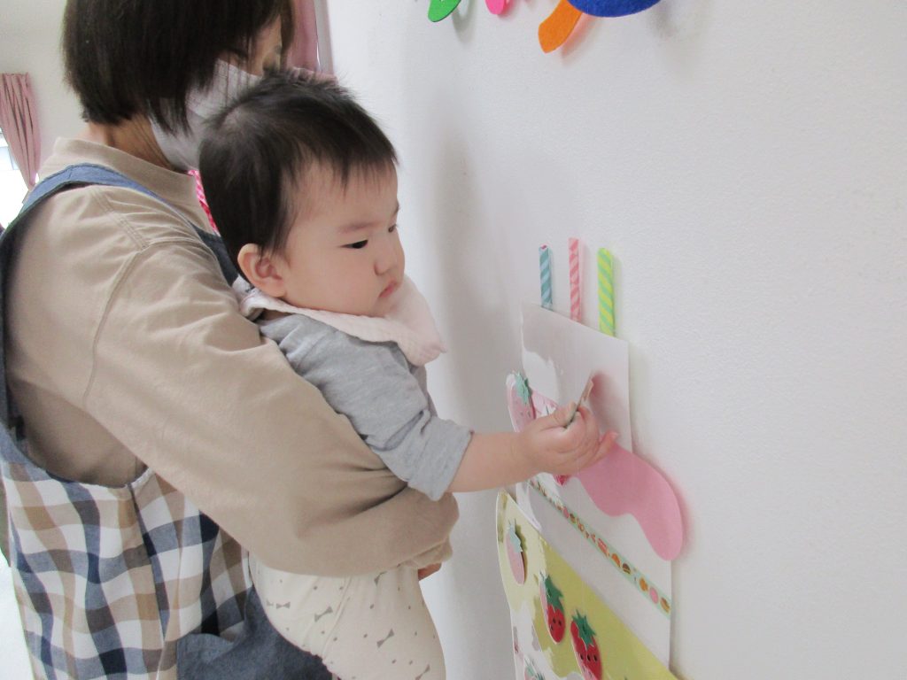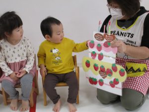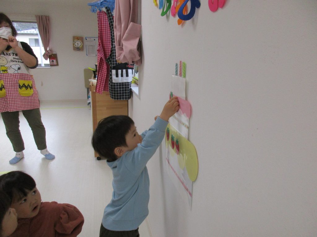 誕生児のお友達のためにみんなでケーキにいちご🍓の