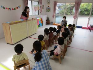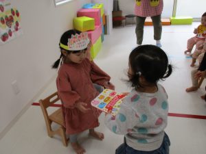 誕生児のお友達はみんなの前に並び先生からインタビューを受けました🎤