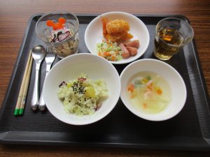 誕生会の後はもう一つのお楽しみ、給食の時間です!!