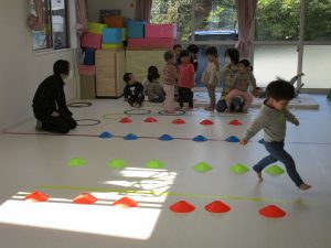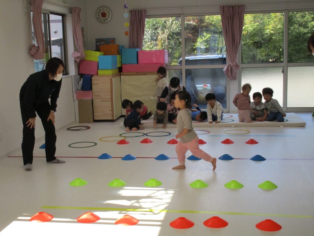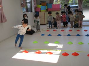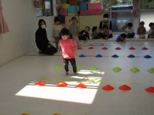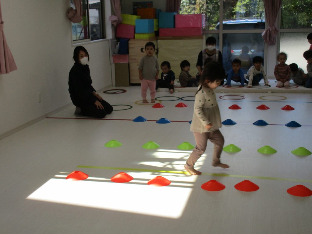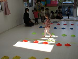 平均台やニョロニョロ動く紐を飛び越えて何度も繰り返しました(^_^)