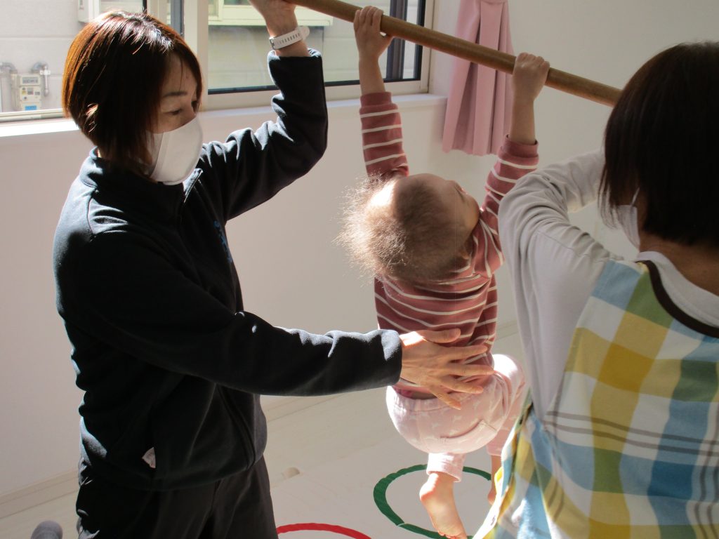 1歳児さんはぶら下がりにはあまり興味を示さず、